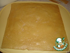 Раскатать тонкие коржи (очень тонко)я раскатывала на силиконовом коврике, и вместе с ковриком переносила их на противень и выпекала