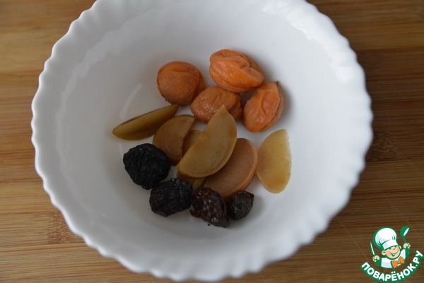 - Сухофрукты (яблоки, чернослив, курага) — 100 г