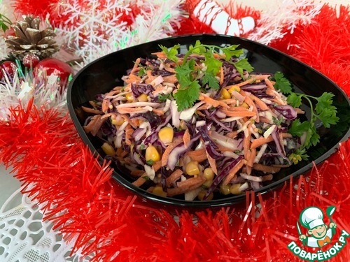 Предлагаю вам на праздничный стол приготовить вот такой свежий салат из капусты. В Америки и Европе его часто подают к мясу, вариаций очень много, попробуйте и такой.