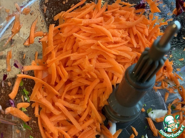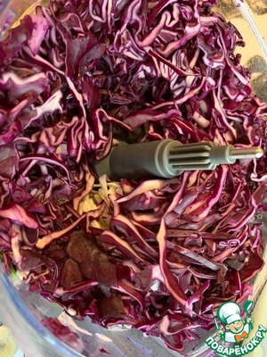 Посолите и пожмякайте капусту руками, чтобы она дала сок.