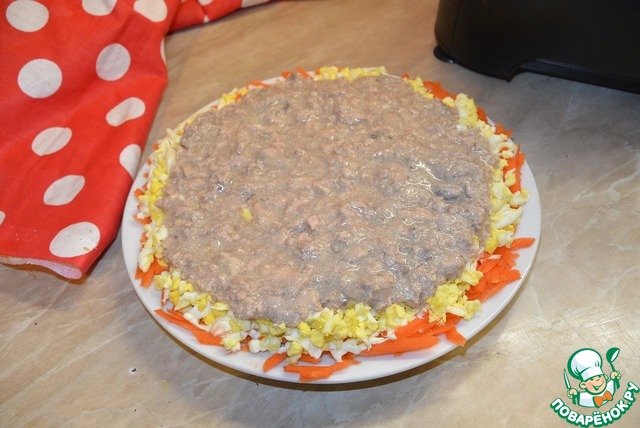 Рецепт «Салат "Печень трески между шубами"»: