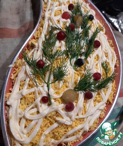Салат "Печень трески между шубами"