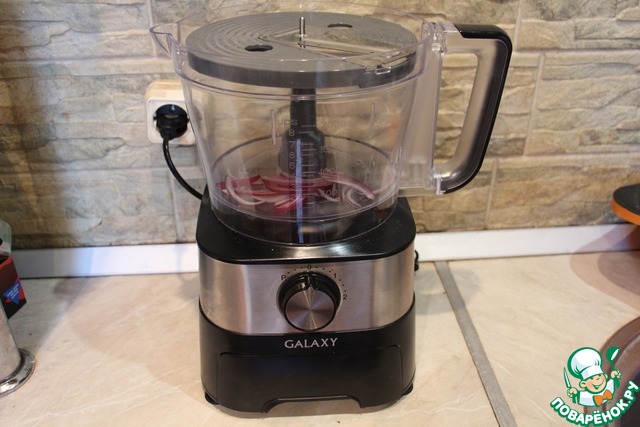 Красный лук нарезать полукольцами в комбайне GALAXY GL2300.