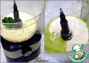 Затем добавьте шпинатное пюре, взбейте смесь той же насадкой. Далее добавьте муку и разрыхлитель, не меняя насадку, смешайте все составляющие в однородное гладкое тесто (густота - как на оладьи).
