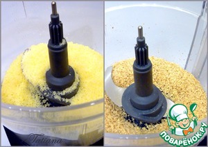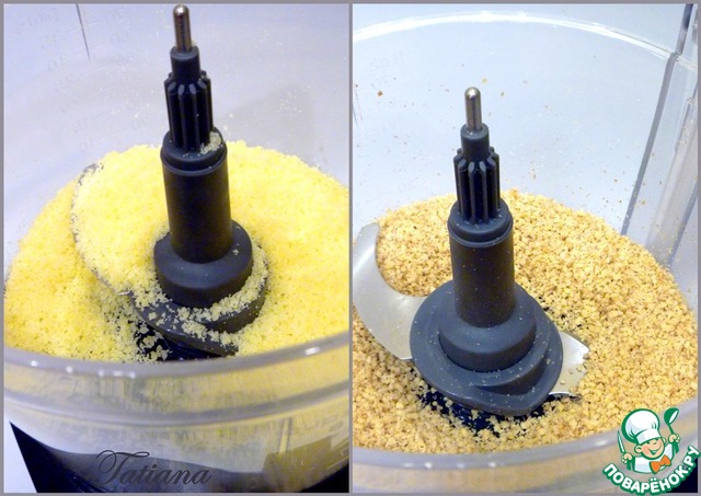 В кухонном комбайне измельчите по очереди пармезан и грецкие орехи, перемешайте сыр и орехи с подсохшей хлебной крошкой. -