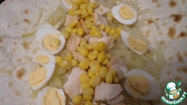 Рецепт «Пирог из лаваша с курицей и кукурузой»:
