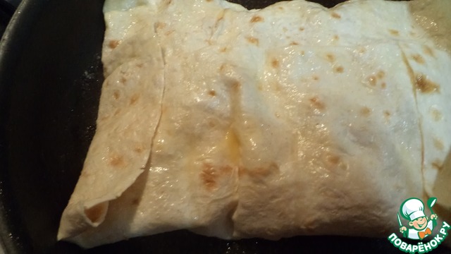 Закрыть лаваш, как конверт и обжарить на сковороде с маслом