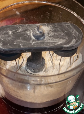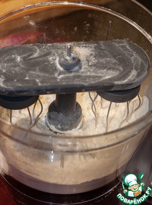 Для приготовления теста, я решила воспользоваться комбайном GALAXY. В чашу комбайна просеиваем муку и манную крупу, сахар и разрыхлитель.