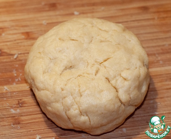 Формируем тесто в шар. Готовое тесто закрываем пищевой пленкой и убираем в холодильник.