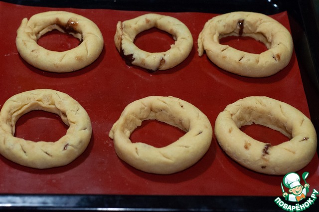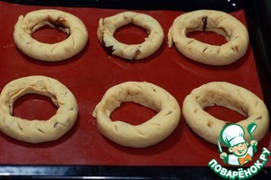 Формируем затем кольца. Сверху острым ножом делаем надрезы. Выпекаем при температуре 180 С 30 мин.
