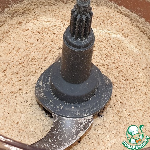 Вафли помещаем в комбайн. Лучше предварительно поломать на кусочки.
