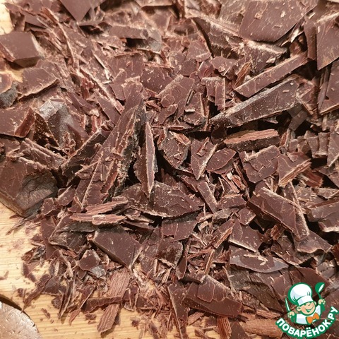 Пока сливки прогреваются, ломаем на кусочки и рубим 250г шоколада. Лучше брать шоколад 72-75% какао. Но у меня оказался в наличии шоколад 60% какао и тоже всё получилось, к счастью.