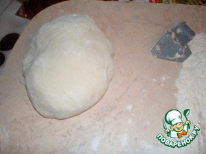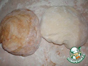 готовое тесто разделить на две равные части. Одну отложить накрыв полотенцем, чтобы не обветрилось