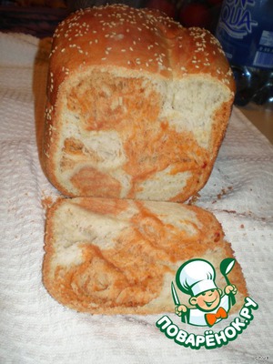 рецепт, если не ошибаюсь с форума хлебопечки. хлеб получается очень вкусный и очень эффектный