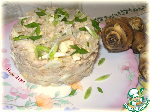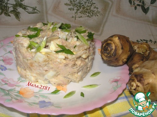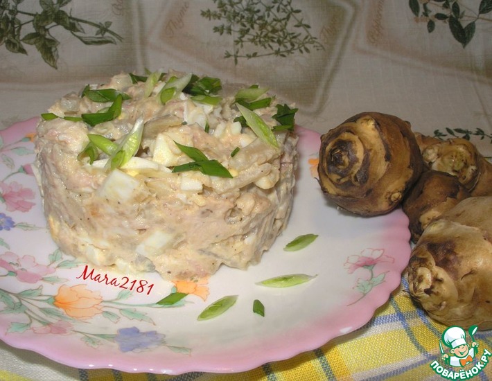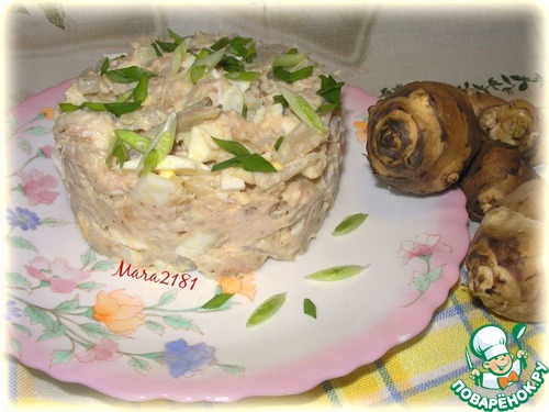 Сытный и полезный салат с насыщенным и оригинальным вкусом благодаря добавлению клубней топинамбура. Топинамбур подвергается термической обработке, что надолго придаёт чувство сытости, а также наполняет организм полезными элементами. Угощайтесь на доброе здоровье!