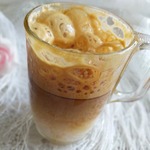 Вся фишка этого напитка в пышной пене. Многие ее почему-то советуют и преподносят отдельно для употребления, как крем. Меня это слегка возмутило. Ведь этот крем - основа фраппе, его невозможно просто есть, на вкус он не очень.