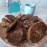 Выкладываем на тарелку, пресекаем на корню все попытки возбуждённых запахами голодных домочадцев стащить втихаря пару штучек и созываем всех к столу... У меня получилось две таких тарелочки пышущих, горячих, ароматных дерунчиков, а так как я сейчас один, то отпала надобность воровать с тарелки и праздник живота мне обеспечен на пару дней!!!
