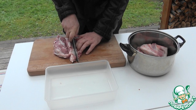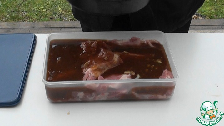 Выложить мясо в емкость для маринования, залить маринадом и оставить на 8-12 часов мариноваться. Маринад предварительно обязательно должен остыть.