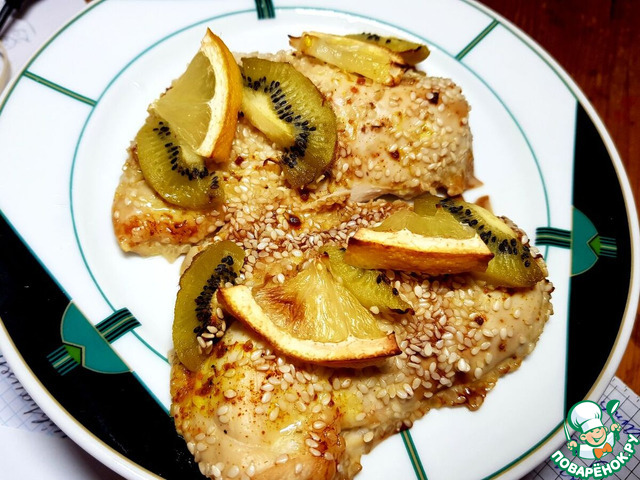 Рецепт «Курочка с кунжутом, лимоном и киви»: