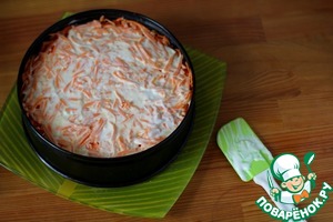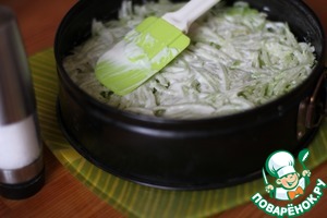 Выложить в форму и смазать майонезом, посолить. Майонеза нужно использовать немного, т. к. овощи сочные.