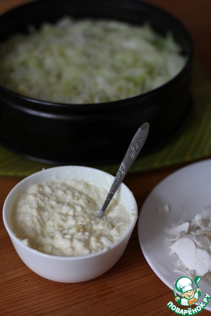 • Яйцо смешаем с майонезом и нанесём следующим слоем.