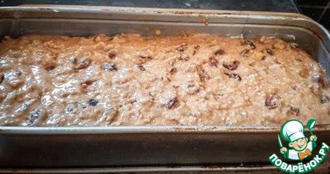 Форму кирпичик объемом 1 литр смазать растопленным сливочным маслом и перелить тесто в форму. Поставить выпекать в духовку, разогретую до 160ºС.