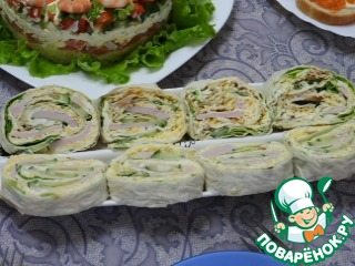 Рецепт «Рулет из лаваша с ветчиной и огурцами»: