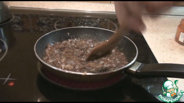 Для красного соуса мелко нарежем две луковицы, измельчим чеснок. Выкладываем на сковороду с растительным маслом, добавляем сахар или мед и хорошо обжарим, чтобы лук начал золотиться. Потом добавляем винный уксус, соевый соус и наршараб. Обжарим минуты три, чтобы все вкусы смешались.