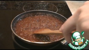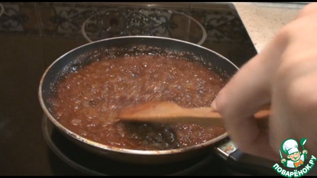 Потом добавляем кетчуп или томатный соус и обжариваем минут 10-15, чтобы соус ужарился. Через пять минут попробуем, добавим по вкусу соль, перец, специи. Готовый соус можно оставить в таком виде, а можно измельчить блендером и остудить.