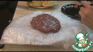 Влажными руками берем фарш, выкладываем его на полиэтиленовый пакет и формируем котлету, размером больше, чем ваша булочка, при жарке она немного ужарится. Перекладываем пакет с котлетой на тарелку, берем следующий и формируем еще одну котлету. Котлеты жарим то количество, которое будете есть, впредь готовить не нужно, они вкусные только приготовленные.