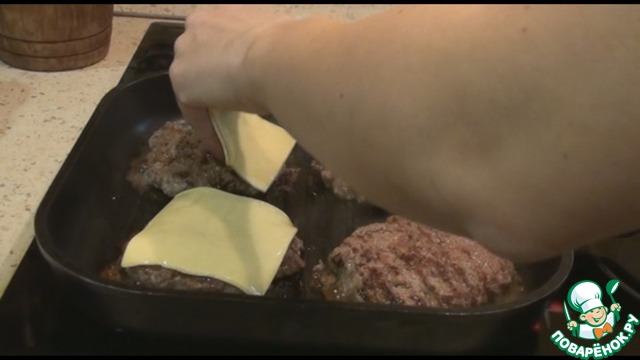 Маленький лайфхак: Когда перевернете котлету и положите сыр, накройте сковороду другой сковородой или, например, фольгой.