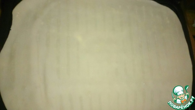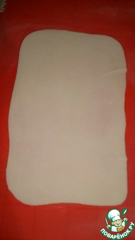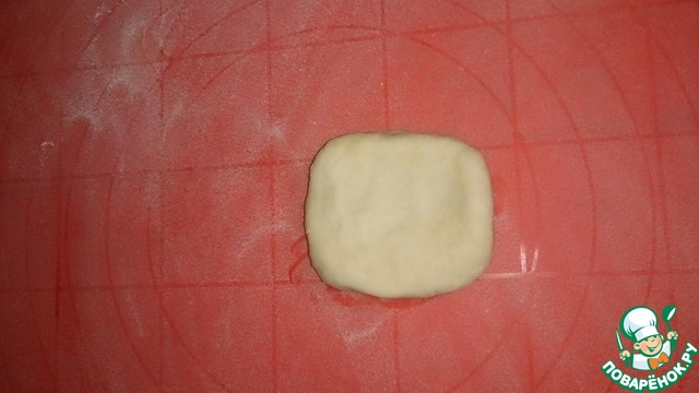 2. Берём по 1 шарику и раскатываем прямоугольник по форме пластины гриля немного подпыляя мукой рабочую поверхность. Совет - придайте шарику форму квадрата, тогда будет легче раскатать прямоугольник.