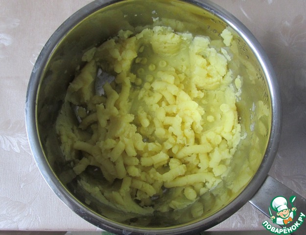Сварившийся картофель разминаем в пюре и охлаждаем минут 10.