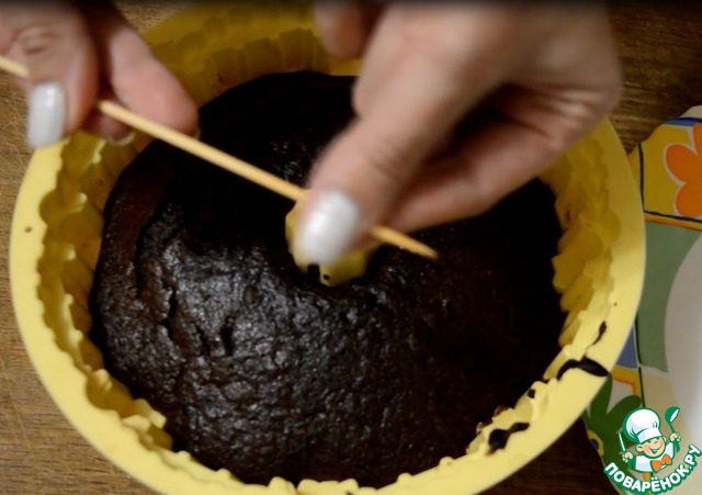 Проверяем готовность деревянной палочкой протыкивая кекс. Если палочка остаётся чистой значит все готово.