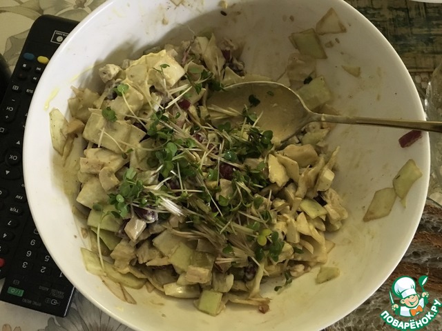Салат смешать с майонезом. По своему вкусу можно немного посолить.
