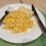 Перемешивая, готовим ещё минуту, пока яйцо не схватится