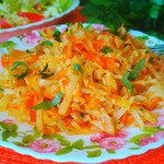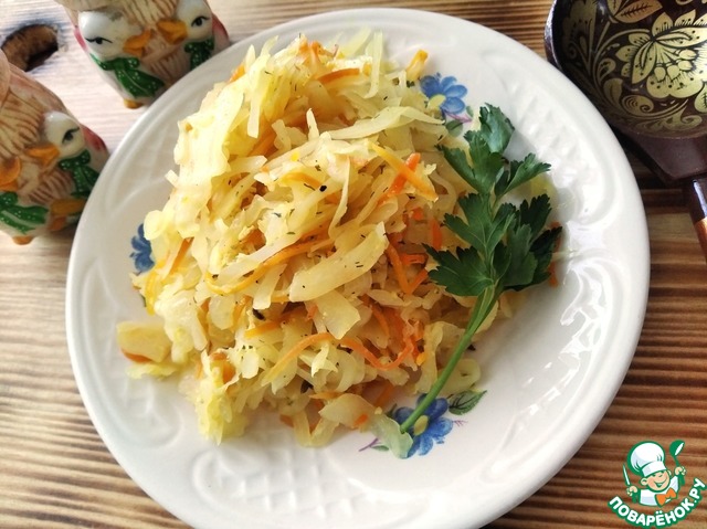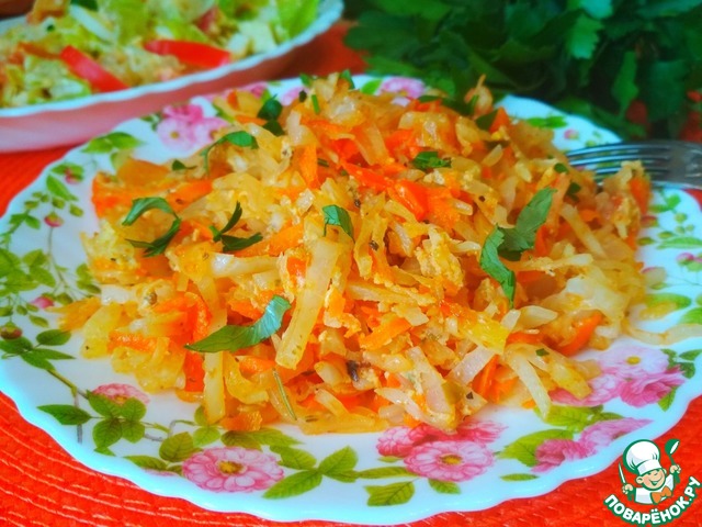 Так уж случилось, но капуста стала для меня основным гарниром. Постоянно ищу рецепты, позволяющие разнообразить блюда из капусты. Вот один из таких. Капуста получается необычно нежной, воздушной, а готовится просто и быстро.
