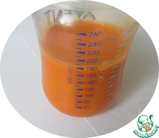 Облепиху измельчаем блендером и протираем через сито. Получаем около 180 мл довольно жидкого пюре.