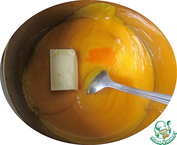 Протираем загустевший курд через сито, чтобы избавиться от возможных комочков. Добавляем остальное облепиховое пюре и 50 г сливочного масла.