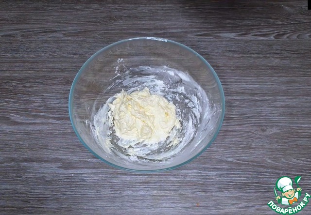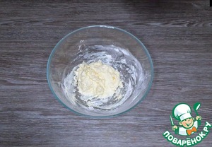 К сметане добавить соль, сахар и 3 столовые ложки муки, все тщательно перемешать