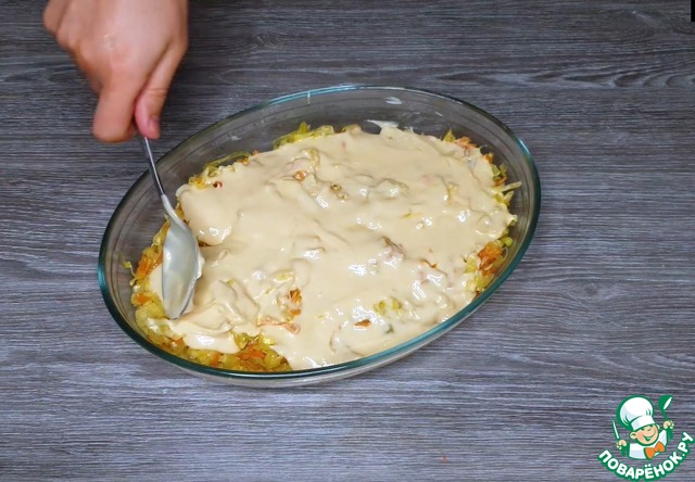 Пока капуста тушится, можно приготовить тесто. Для этого: