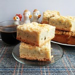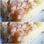 В разрезе видны три слоя. Тесто, начинка и обсыпка.