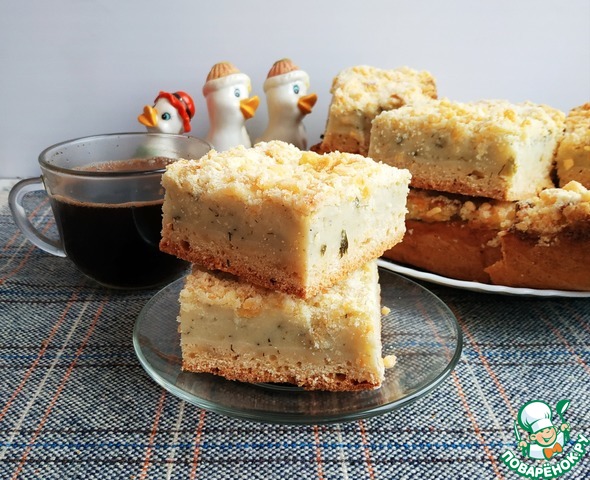 Очень вкусный пирог с аппетитной, румяной, сырной корочкой. Добавленный в начинку сухой укроп придаёт пирогу очень приятный аромат.