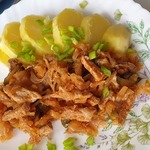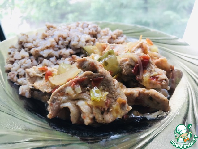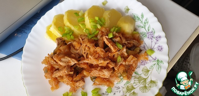 Но на фото готового блюда - абсолютно другой вид. Капуста + лук + огурцы, даже если они "ушли в кисель" - не испарятся. А на фото - практически чистые кусочки свинины.