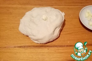 В подошедшую опару всыпать просеянную муку, в воду всыпать соль и сахар, хорошо разболтать и вылить в емкость с опарой. Замешать тесто и хорошо вымесить его до однородности, затем выложить на рабочую поверхность и еще минут 10-15 месить. Подпылять мукой рабочую поверхность НЕ НАДО! Тесто получается очень пластичное и совсем не липнет ни к рукам, ни к столу. На последнем этапе брать во кусочку масла и хорошо вмешивать его в тесто.