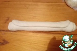 Каждый шар раскатать в прямоугольник, толщиной не более 1 см, затем, подтягивая тесто, скатать в рулет