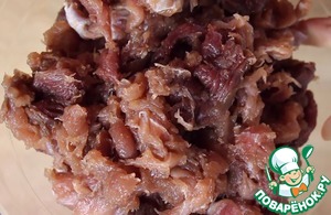 Как только мясо потемнеет и поменяет структуру, станет волокнистым, фарш готов. Ставим фарш в холодильник на сутки.