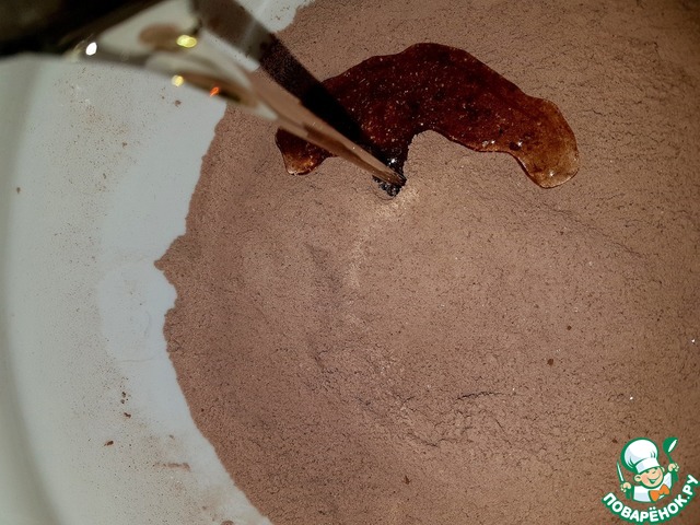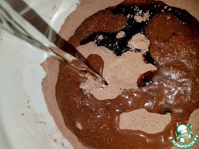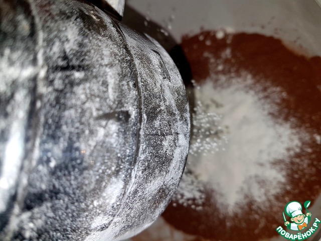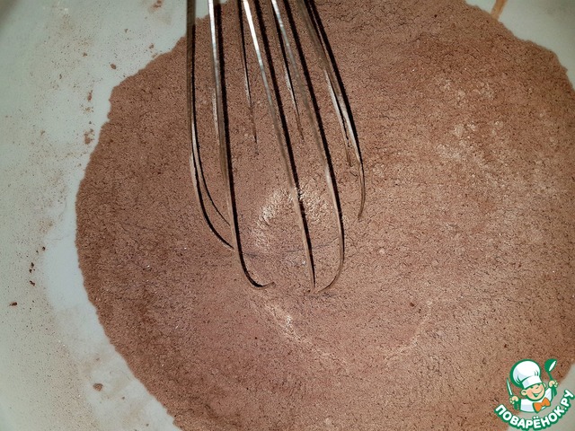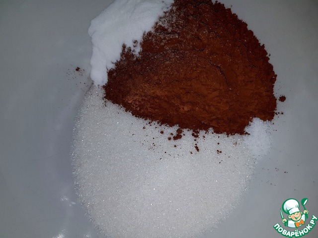 Какао, сахар, соду, соль - все высыпаем в глубокую миску. -
