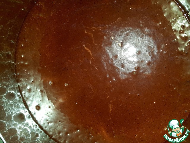 сметану, сахар, какао варим пока сахар не растворится. Добавляем масло. Хорошо перемешиваем.