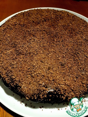 Часть шоколада выкладываем сверху пока наш торт и помадка не остыли. Так корж еще лучше пропитается.